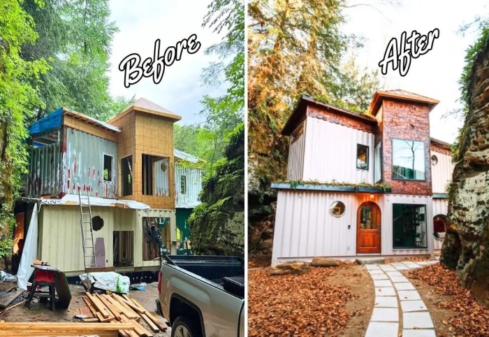 Понадобилось 5 месяцев и 350 тыс. долларов, чтобы из старых грузовых контейнеров получился комфортабельный лесной дом (Roca Box Hop, США).