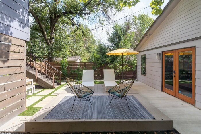 Если нет клумбы, то часть террасы можно превратить в бассейн. | Фото: thespruce.com.