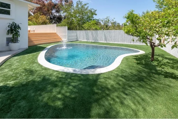 4. Органичное совмещение лужайки и бассейна без выступающих бортиков