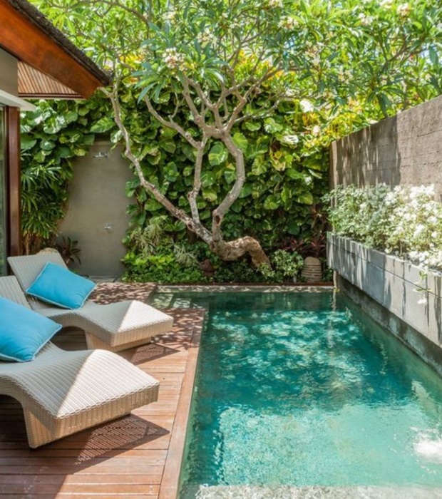 Когда температура повышается, что может быть более освежающим, чем окунуться в бассейн с прохладной водой прямо у себя во дворе? Правда, не у всех есть достаточно места или средств для обустройства полноразмерного бассейна, но все же крошечный водоем может стать шикарной альтернативой, которая не менее привлекательна и более достижима. Конечно же, в мини-бассейне не удастся понырять и проплыть пару тройку кругов, но в битве с жарой он, как и полноценный собрат, всегда оказывается победителем.