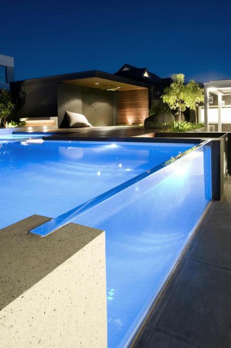 Стеклянные резервуары для бассейна придадут участку особый шик. | Фото: pinterest.com.au.