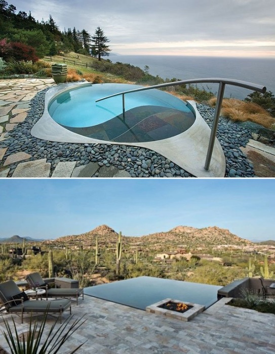 Видовые бассейны становятся настоящим украшением участка, открывая фантастические виды на окружающий ландшафт.