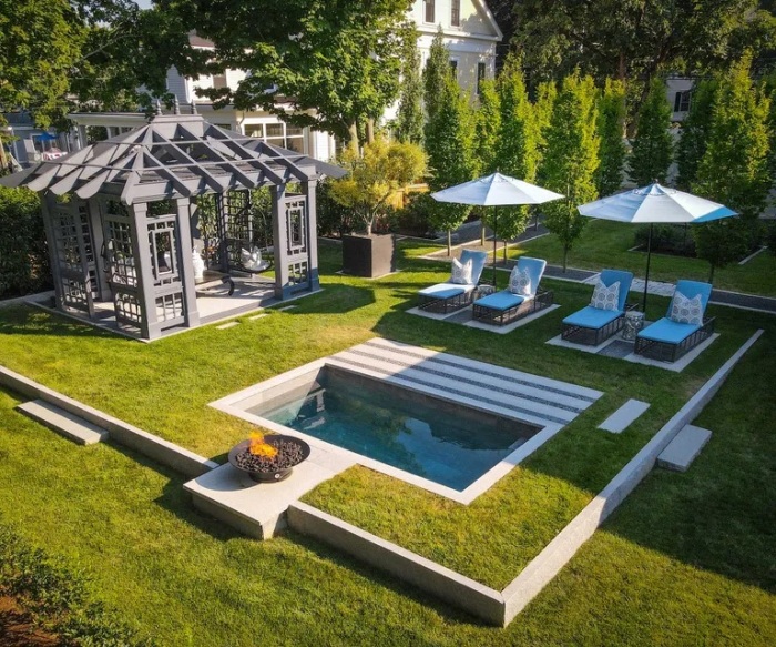 Впечатляющий пример организации роскошного отдыха на заднем дворе. | Фото: homesandgardens.com.