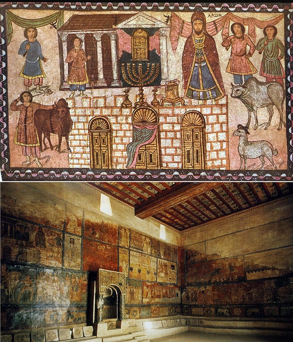 Руины одной из древнейших синагог мира были обнаружены у остатков крепостной стены античного города Дура-Европос, который, кстати обнаружили совершенно случайно и не так давно – в начале 1930-х. Исследования показали, что остатки строения были ничем иным как древнейшей христианской церковью, возведенной ориентировочно в 233-235 гг. Об этом свидетельствуют фрески с изображением библейских мотивов и сохранившаяся надпись на имперском арамейском языке, выполняющего роль международного языка Ближнего Востока. А вот высеченные на древнегреческом языке письмена поведали имя ее основателя, которого считают «старейшиной евреев», речь идет о Шмуэле бен Иди. В настоящее время ее часто называют самой ранней «домашней церковью», она больше не используется по назначению, поскольку находится в руинах.