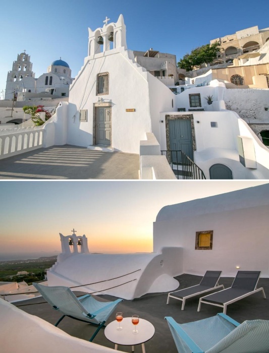 Скалы греческого острова Санторини (Тира) просто усеяны пещерными домами, история которых началась с доисторического периода, а затем время от времени служили безопасным убежищем в период нападений воинствующих соседей, гонений для монахов или были домом для тех, кто не мог позволить построить традиционное жилище. Среди тысяч рукотворных и природных пещер, где когда-то жили и до сих пор живут люди, выделяется Пещерный дом Деметры (Demeter Cave House), возраст которого превышает тысячу лет. После преобразований пещерная резиденция превращена в атмосферный отельный номер, в котором фактура камня спрятана под штукатуркой, а изысканности интерьеру добавляют сводчатые потолки и арочные дверные/оконные проемы. Здесь обустроены: гостиная открытой планировки, столовая, кухня, спальня, ванная комната и джакузи под открытым небом. А также имеется панорамная крыша, откуда открывается восхитительный вид на гору Профитис и Эгейское море.