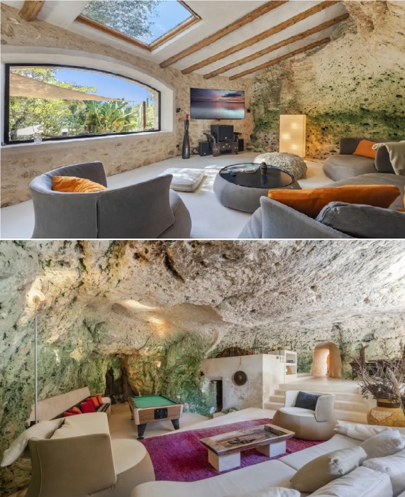 На Майорке, одном из Балеарских островов Испании, имеется совершенно уникальная резиденция, демонстрирующая широкие возможности жизни в пещере. Древнюю пещеру, начиная с XIV же века адаптировали под разные нужды, начиная от защиты во время разорительных набегов, размещения загонов для скота и заканчивая шикарной резиденцией, площадь которой достигает триста квадратных метров (вместе с переходами, террасой перед входом и подземным «озером»). Чтобы сохранить атмосферу пещерного дома, даже оштукатуренные и побеленные известью стены и фактурные потолки сохранили вид подземелья, давая прикоснуться к истокам, но в привычных современных условиях жизни.