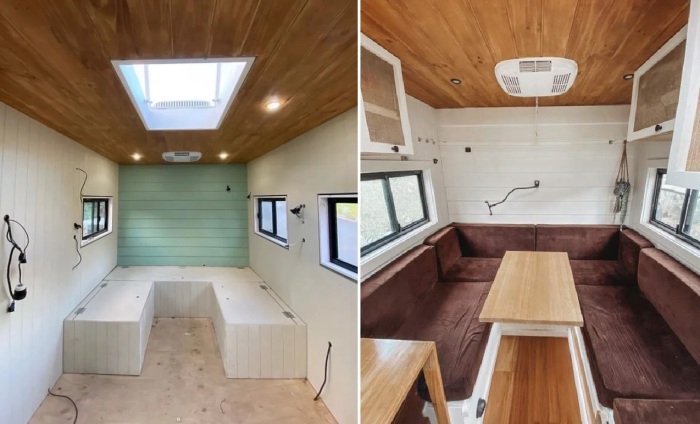 Учитывая, что Пол довольно высокий молодой человек не каждый автофургон подходил по размеру, ведь жить в доме, где нужно постоянно контролировать свои действия, мало кто решиться. Автобус не подходил из-за больших габаритов, трейлеры – из-за дороговизны и высоты, поэтому энтузиасты остановили свой выбор на скромных размеров фирменном грузовике, в котором ранее перевозили кока-колу. За автомобиль Isuzu 2005 года выпуска молодые люди заплатили чуть более 11 тыс. долларов (США) и в 2021 году начали преобразования. Учитывая, что Пол по профессии плотник, не лишенный творческой жилки и знающий толк в проектировании, привлекать специалистов к трансформации не стали. Мало того, что удалось неплохо сэкономить, так еще и не остановились работы из-за ограничений, связанных с общемировой пандемией, а также все процессы делались качественно и скрупулезно, чего редко можно добиться от бригады подрядчиков.