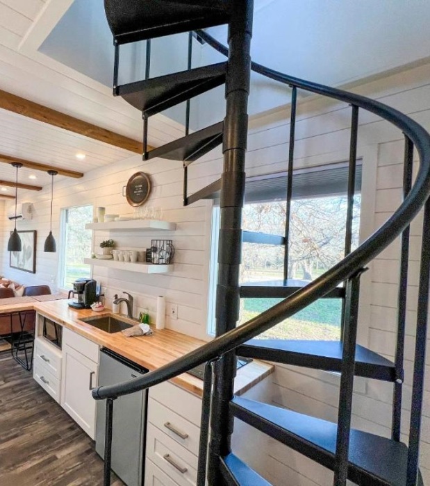 Изящная стальная лестница, ставшая украшением интерьера, позволит добраться на второй этаж (Flagship, США). | Фото: cargohome.com.