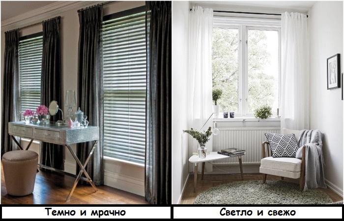 Пора выходить из зимней спячки и впускать в квартиру свет. Для начала нужно убрать все плотные, тяжелые шторы, которые делают интерьер мрачным. Затем вооружитесь тряпкой, водой и вымойте, наконец, все окна (мы точно знаем, что вы обещаете себе это сделать еще с прошлого лета) – ничего не должно мешать проникновению солнечных лучей в дом. Вместо громоздких гардин повесьте легкие, струящиеся занавески, которые хорошо пропускают и рассеивают свет.