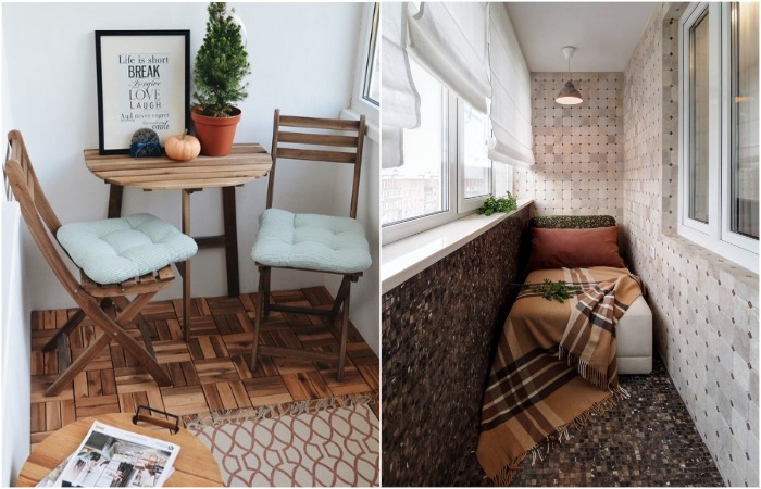 В соответствие со своими целями начните оформление лоджии. Например, если вы хотите сидеть там по утрам с чашкой бодрящего кофе, а по вечерам – с бокалом вина, отдыхая после работы, превратите подоконник в барную стойку и поставьте высокие стулья, чтобы была возможность наслаждаться прекрасным видом во время трапезы. Также можно установить компактные табуреты, откидной столик и маленький диван. Несколько полок на стене позволят разместить любимые книги, и тогда балкон станет уютным местом для чтения. Не забудьте об освещении – на лоджии должно быть комфортно не только днем, но и вечером.
