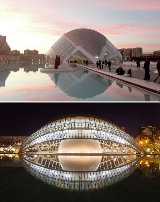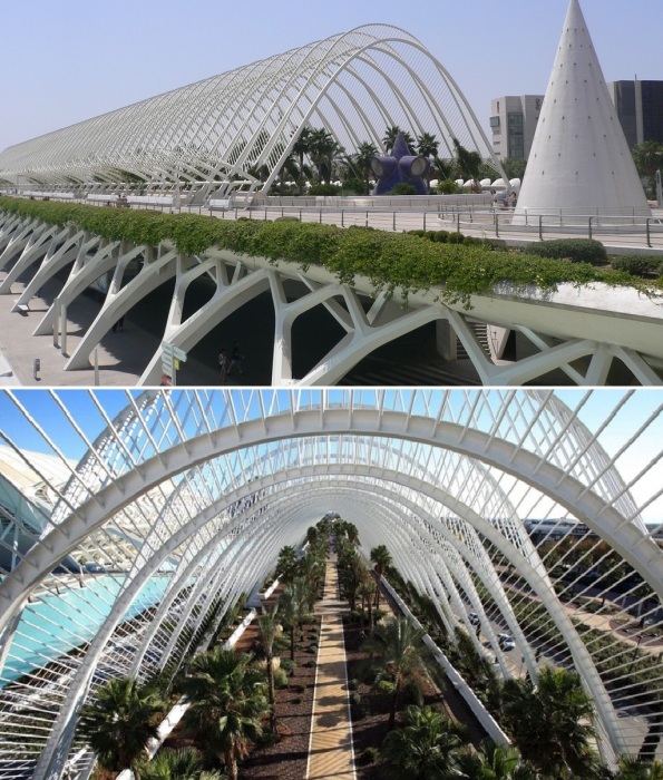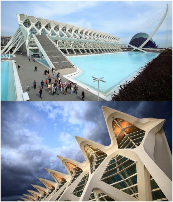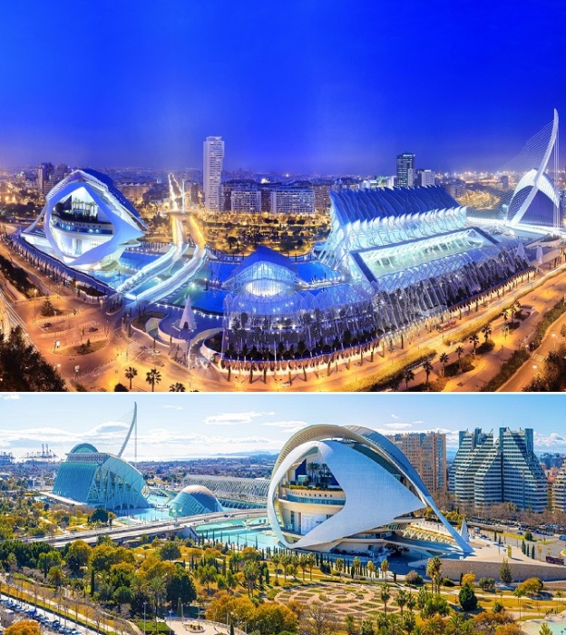 Ни одно путешествие в прекрасный испанский городок Валенсия не будет полным, если забыть заглянуть в район, где когда-то было русло реки Турия. Здесь можно увидеть поистине сюрреалистичную картину: 6 футуристических объектов невероятной формы предлагают незабываемые приключения. Авторы Novate.ru хотели бы отметить, что Город искусств и наук более чем удивителен. Великолепная архитектурная композиция, предназначенная для общения, отдыха, развлечений и невероятных познаний, является интереснейшей точкой Валенсии. Он состоит из монументальных объектов, спроектированных валенсийским архитектором, скульптором и инженером – Сантьяго Калатравой, каждое произведение которого мгновенно становилось символом Валенсии, отражая потенциал родного города.