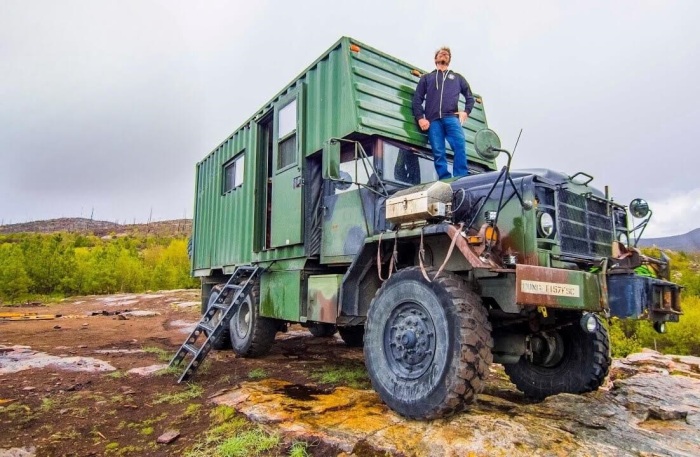 Грузовик, ранее используемый Национальной гвардией Колорадо, вдохновил любителя путешествий на создание брутального кемпера. Молодой человек перебрал массу вариантов создания дома на колесах, но все же остановился на контейнере, точнее сказать, его части, который и взгромоздил на 15-тонный армейский тягач. А что из этого эксперимента получилось – далее в обзоре.