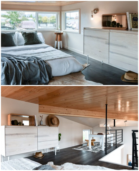 Новая структура после появления на просторах Сети и штате Орегона стала довольно примечательной моделью Tru Form Tiny, демонстрирующей не только философию компании, но и стала ярким примером современного дизайна, и грамотной оптимизации пространства, и его продуманной эргономики. Об этом свидетельствует внешний вид Urban Park Max с его обилием окон и практичность планировки. Благодаря высоте дома на колесах удалось задействовать чердачную часть пространства, обустроив на нем просторную спальню с зоной отдыха, что в свою очередь позволило значительно увеличить полезную жилую площадь, освободив место на нижнем уровне.