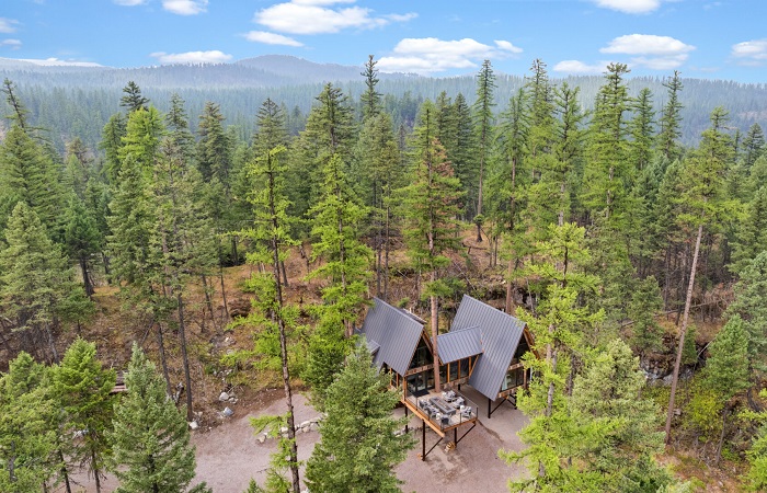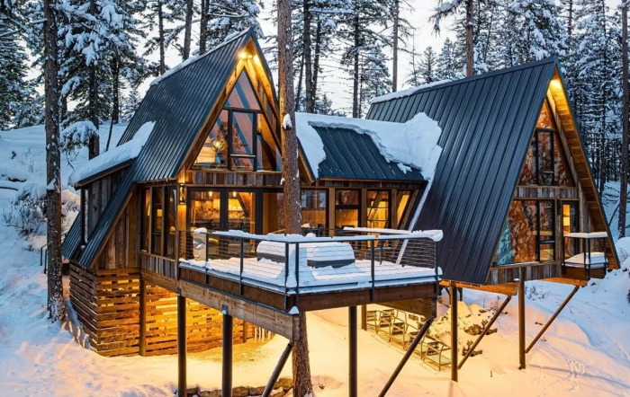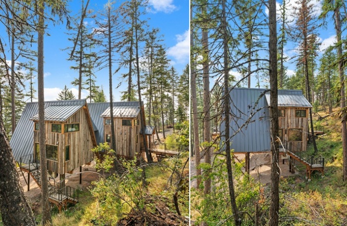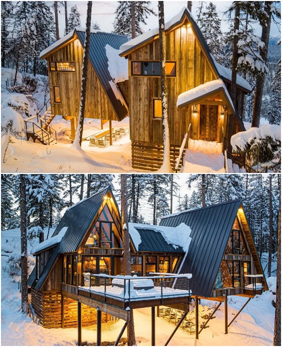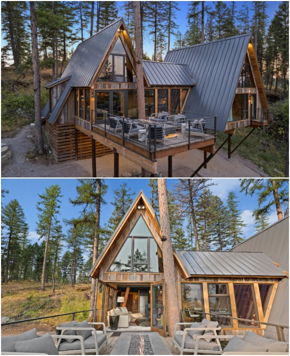 Инновационный домик на дереве On The Rocks Ranch среди заповедных лесов Глейшера. | Фото: nelsontreehouse.com.