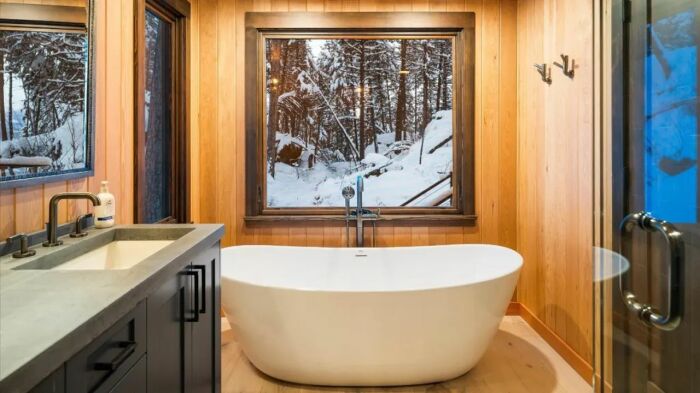 Роскошная ванная комната с видом на живописный ландшафт. | Фото: pinterest.com.