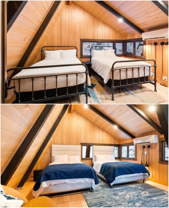 Две оставшиеся спальни предусматривают более скромные размеры, но все же в них есть все, чтобы гости/владельцы могли полноценно отдохнуть, побыть в одиночестве, созерцая лишь бескрайние лесные пейзажи и даже звезды, ведь находятся высоко над землей.