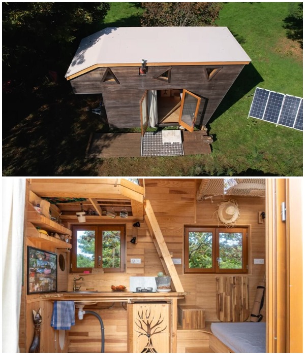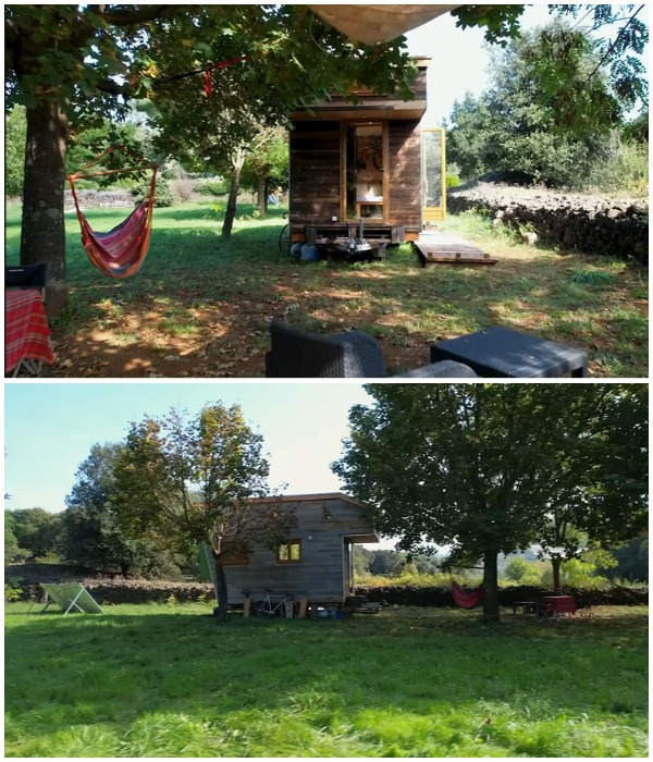 Счастливое семейство, ставшее обладателем крошечного «кокона», под названием The Bonsai Tiny House («Бонсай»), припарковали его на юге Франции, где у них имеется участок в идиллической сельской местности. Как утверждает Ян, они с детьми стараются как можно чаще выбираться на природу, а приятно провести выходные у них теперь есть где. На участке их ждет крошечный дом, полностью соответствующий всем нормам и правилам устойчивости. Здесь есть и крыша над головой, и необходимые удобства, такие как вода, электричество и биотуалет. При этом вода подведена к участку, а солнечные панели вырабатывают достаточное количество энергии, ну а биосептик позволяет свободно пользоваться таким благами цивилизации как душ и раковина.