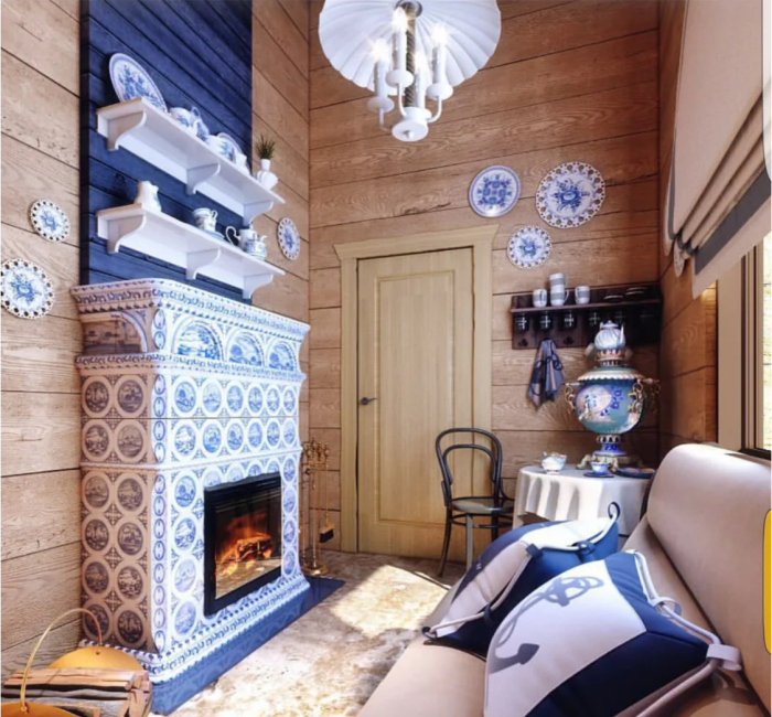 Современные дизайнеры все чаще включают печь в интерьеры, создавая уникальные композиции. Она может быть облицована керамической плиткой, плиткой в стиле «гжель» или даже декоративными панелями, что позволяет подчеркнуть ее русский колорит и стать центром внимания в помещении. Сейчас уже никто не готовит в ней еду, её может изначально спроектировать как каким, декоративный элемент или вообще сделать электрической.