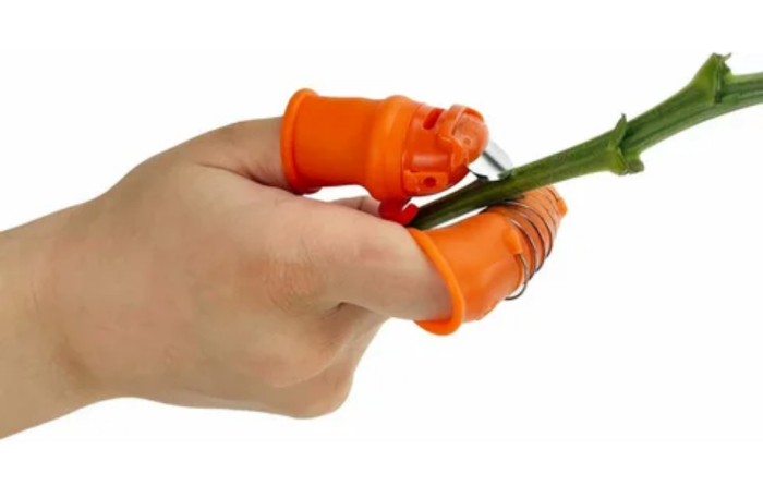 Этот гаджет позволяет защитить руки от порезов и травм при обрезке растений, срезании плодов и других работах. Кроме того, наличие лезвия позволяет быстро и аккуратно выполнять различные операции в саду или огороде. Это приспособление напоминает стандартный напальчник, однако имеет особенность: на его наружной поверхности размещено интегрированное лезвие. Оно крепится на большой палец, а само лезвие используется для подрезки черенков помидоров, огурцов или баклажанов, предоставляя огородникам практичное средство для ухода за растениями.