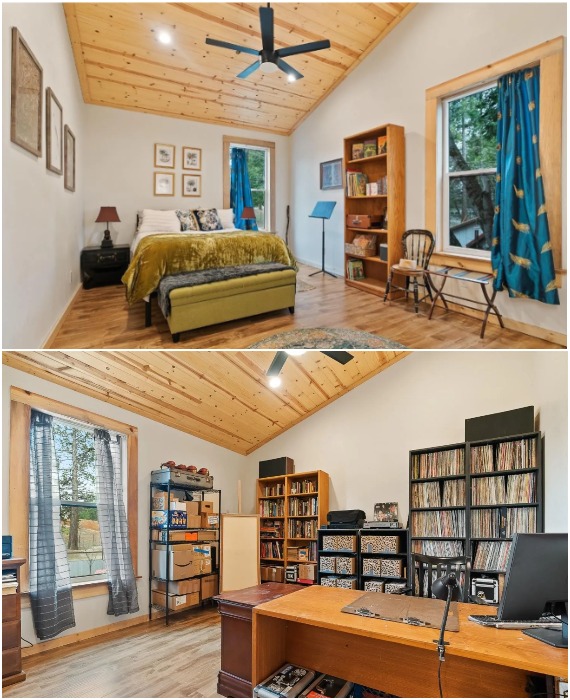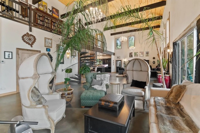 Как сообщается на сайте, «этот совершенно потрясающий и современный дом (около 400 «квадратов») продается вместе с несколькими студиями и домиком на дереве», имеющимися на участке площадью 0,5 га, что позволяет рассматривать его как недвижимость, которая окупится через некоторое время, ведь отдельные помещения в природной зоне легко сдавать в аренду. Ну а основное здание может выступать в роли общественной зоны и убежища для владельцев, которые не склонны к одиночеству.