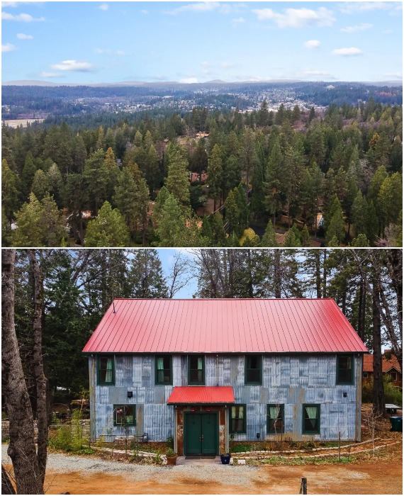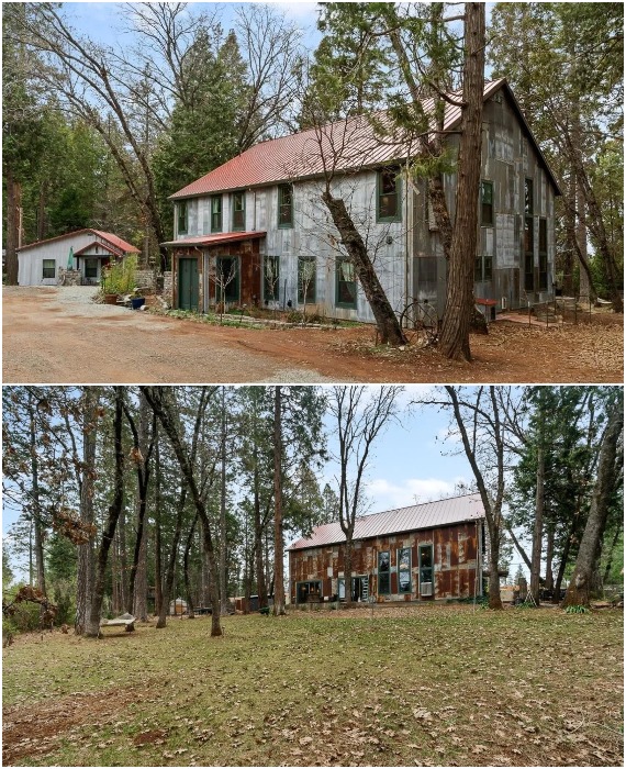 Северная Калифорния, славящаяся восхитительными пейзажами, давно стала местом, где загородные резиденции растут как грибы. В предгорье, неподалеку Сьерры (округ Невада), среди множества роскошных особняков и лесных хижин имеется и вовсе странный объект, который недавно выставлен на продажу. Если бы не это обстоятельство, то о доме, больше похожем на заброшенный металлический амбар, никто бы и не узнал. Сразу же заинтересовал ценник в 1,3 млн, обещающий увидеть роскошный особняк в окружении прекрасного сада или природного парка с множеством модных фишек, которые точно должны заинтересовать современных покупателей.