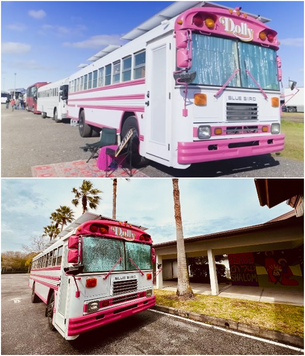 Преображенный автобус Дестини назвала «Долли». Несмотря на то, что загоревшаяся идеей энтузиастка не имела никакого навыка в строительстве, работы с инструментом и в проведении необходимых коммуникаций, она все преобразования и обустройство сделала самостоятельно, вплоть до прокладки водопроводных труб и электрических проводов. Единственное, для подключения оборудования, относящегося к солнечным панелям, был приглашен специалист из компании, где они приобретались. Все остальные операции она произвела сама, после просмотра не одного десятка видеороликов, впрочем, это касается и освоения инструмента, и выбора комплектующих, стройматериалов, утеплителей и проведения электропроводки. А вот основные предметы мебели изготавливали на заказ, но по ее проектам и с учетом роста.