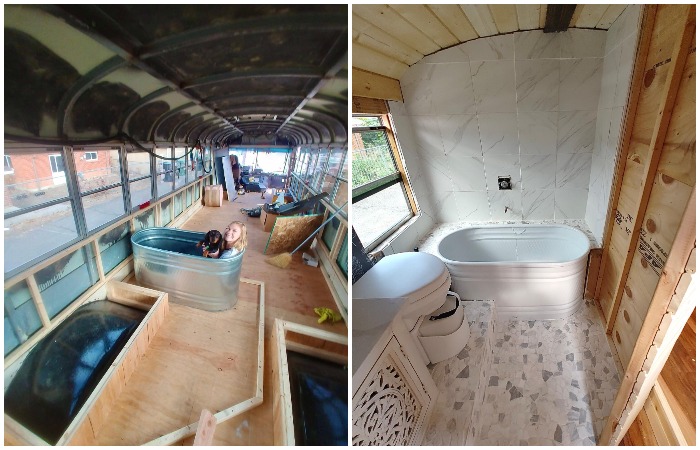 Молодым людям пришлось проделать огромную работу, чтобы превратить 12-метровый автобус в дом, в котором можно проживать круглогодично. Для этого потребовалось основательно утеплить его фасадную часть, пол и потолок, заменить стандартную для такого вида транспорта входную дверь на дверь, используемую в автофургонах. Замена обеспечила более надежным механизмом запирания, а также поспособствовало тепловой эффективности.