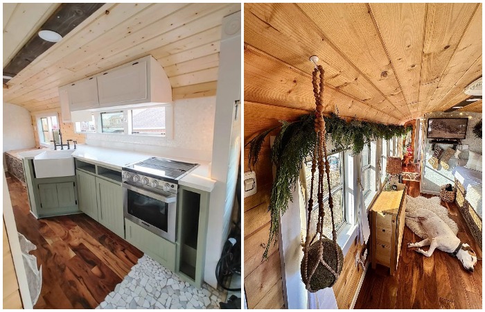Примечательно: Супруги-авантюристы Ник и Эллисон потратили два года на то, чтобы списанный школьный автобус превратить в уютный мобильный дом Ophelia Skoolie, в котором планируют жить и работать на постоянной основе. На покупку автотранспортного средства и его переоборудование они потратили 45 тыс. дол., и это при том, что все работы они выполняли самостоятельно. В продолжение темы предлагаем заглянуть в мобильный домик, который построил другой дуэт любителей минимализма и кочевой жизни.