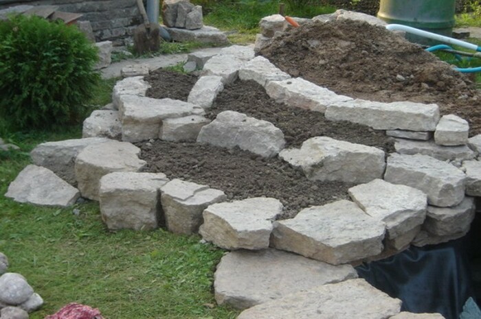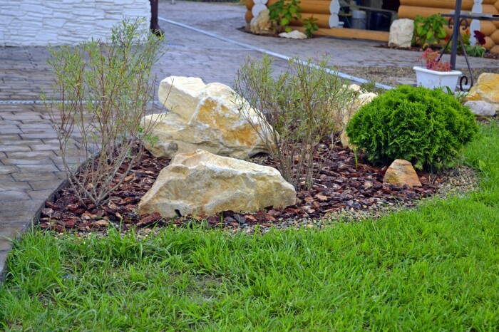 Фундаментом такой композиции служат камни естественного происхождения, которые могут варьироваться от массивных валунов до мелкой гальки, вроде гранита, песчаника, известняка и сланца.