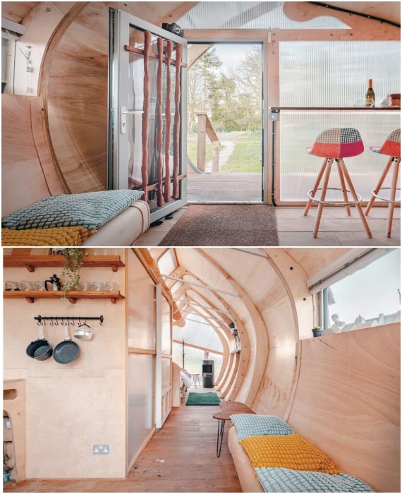 The Monocoque Cabin имеет надежную конструкцию и качественное утепление, что позволяет жить в нем в любых климатических зонах.