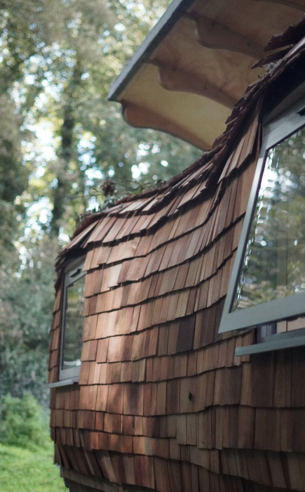 Авторы Novate.ru хотели сразу же отметить, несмотря на сказочный вид, конструкция и оболочка The Monocoque Cabin довольно надежные, его структурированная обшивка, выполненная из древесины кедра, способна выдерживать значительные нагрузки, будь то снег, сильные порывы ветра или землетрясения. Чтобы достичь такой устойчивости, архитектор и инженеры использовали методы проектирования и строительства, применяемые в аэрокосмической и автомобильной промышленностях.