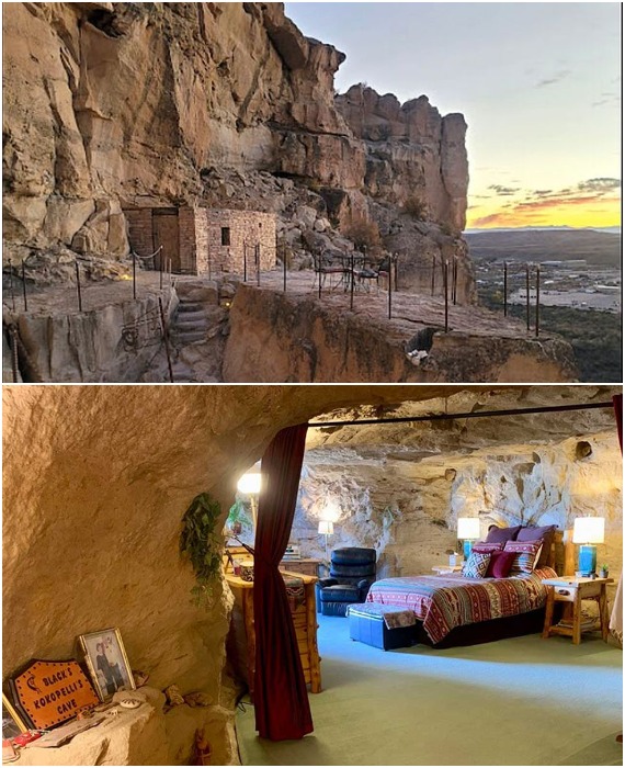 В неприступной скале вырубили колоритный пещерный отель Kokopelli's Cave Bed & Breakfast (Нью-Мексико, США).