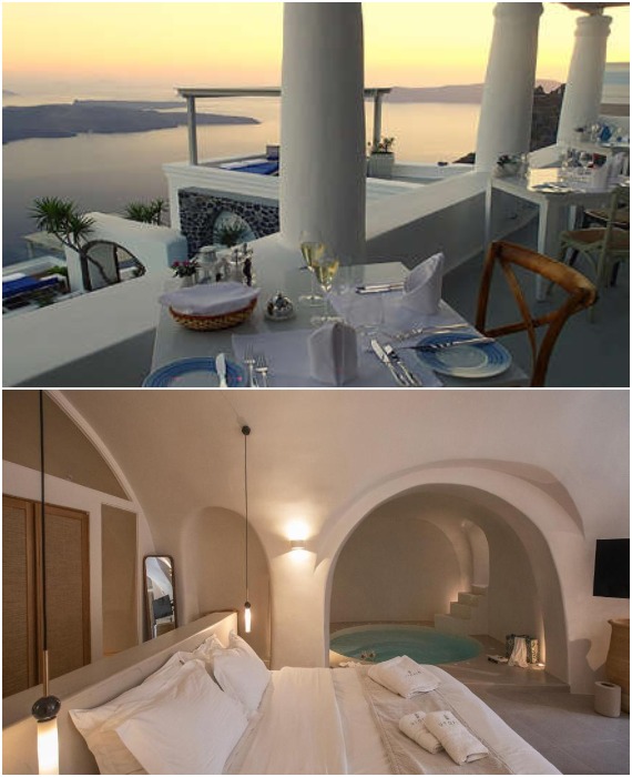 Роскошная обстановка в пещерных номерах Iconic Santorini (Греция).