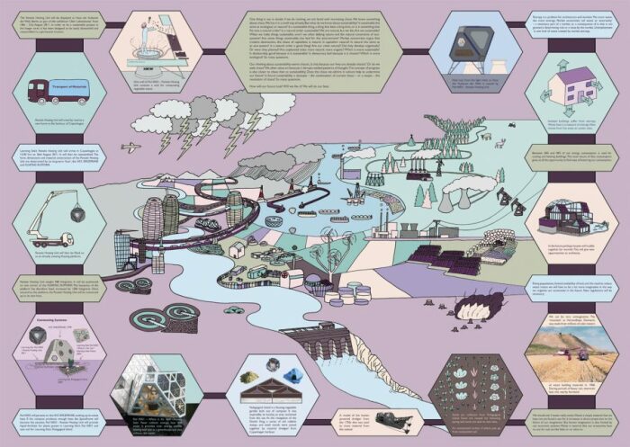 Одними расчетами группа не ограничилась, художники создавали макеты, резали детали, штамповали и гнули листы, строили все вручную. Все это делалось в качестве эксперимента и по многу раз одно и тоже, чтобы создать абсолютно доступную структуру, не требующую много времени на ее возведение, ни строительства фундамента, потому что она устойчива и максимально безопасна сама по себе. При этом жилище должно строиться без использования кранов, а детали для будущего дома. Плюс ко всему уже тогда, группа думала об устойчивости и самодостаточности, рассчитывая возможности использования солнечных батарей и низковольтных насосов.