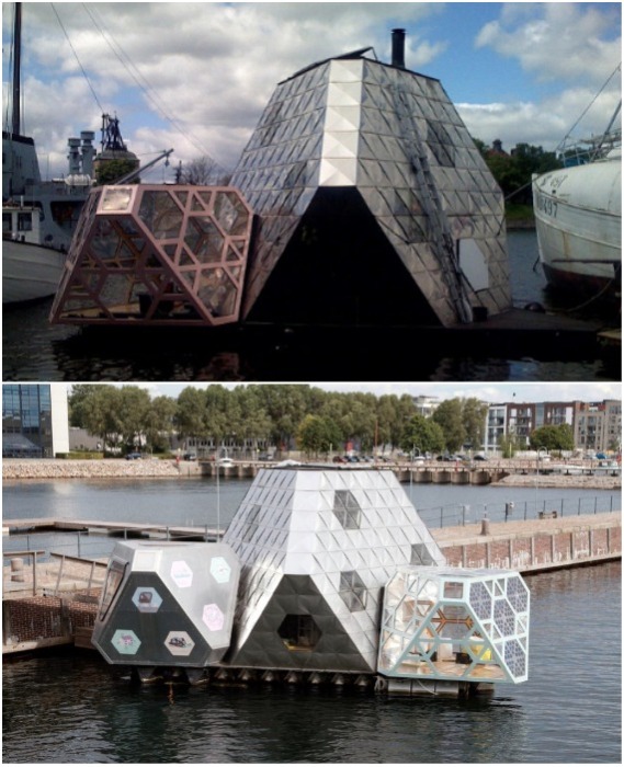 Модульный дом был установлен на самоходную плавучую платформу, работающую на солнечной энергии.