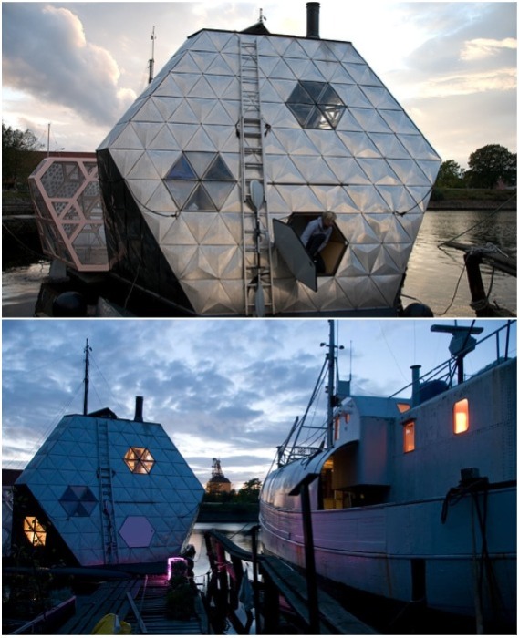 Оригинальный домик в форме объемного призматического объекта задумывался, как общественное место, где каждый желающий мог ощутить на себе нахождение в крошечном замкнутом пространстве, увидеть все плюсы и минусы, зарождающейся философии минималистичной и устойчивой жизни. Как стало известно редакции Novate.ru, после того как первый прототип был собран студентами архитектурного факультета Датской королевской академии изящных искусств, Рикке Лютер решила протестировать Spaceframe Complex в качестве жилища. Вдохновленная художница попросту поселилась в плавучем доме и прожила в нем целых 13 лет.