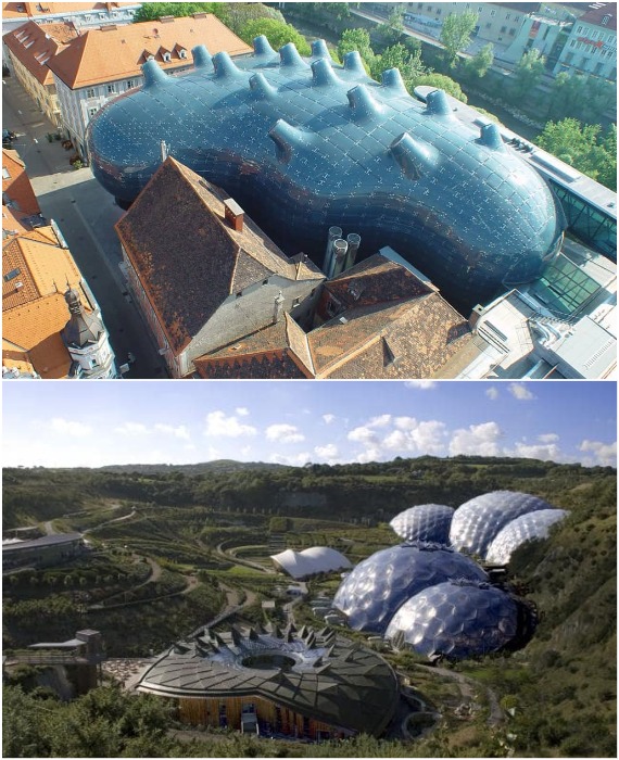• Blobitecture – это жанр, название которого неразрывно связано с органичными формами, позаимствованными у самой природы. Он выражает общую идею «архитектуры-капли», здания которой принимают более гармоничные очертания, повторяя форму той самой капли. Эти здания впервые начали появляться в середине 1990-х годов, но в 2000-х годах их наконец заметили. Учитывая нетрадиционные формы и обтекаемость, этот жанр относится к тем, которые рассчитать без помощи передовых компьютерных программ точно не получится.