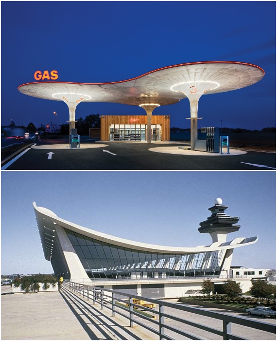• Архитектура Гуги мало того, что имеет довольно необычное название, так еще и является наименее известным направлением в искусстве. Идея этого жанра архитектуры основана на сочетании научных достижений, таких как распространение автомобилей и связанных с ними форм, а также очертаний самых ранних реактивных самолетов и ракет. Атомная и космическая эры оказали значительное влияние на архитектуру. Стиль Гуги начал ассоциироваться с уникальным видением будущего, которое воспроизводилось в мультфильмах и фантастических киноэпопеях.