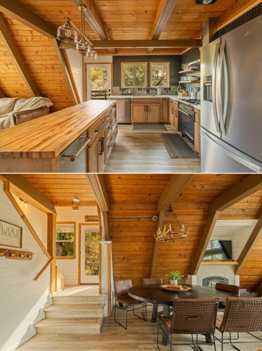 При оформлении интерьера лучше сохранить красоту натурального дерева (Acorn Falls, США). | Фото: moderntinycabin.com.