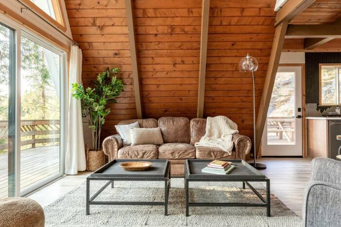 При этом одним из главных плюсов жизни в уютной лесном гостевом доме, таком как Acorn Falls, построенном в живописной горной местности Сьерра-Невада в штате Калифорния, является возможность наслаждаться тишиной и спокойствием, вдали от стресса и шума современной жизни. Проживание в подобных домах позволяет ощутить природную красоту, как внутри помещений, так и за их пределами, поскольку в такого рода строениях нет недостатка в остеклении.