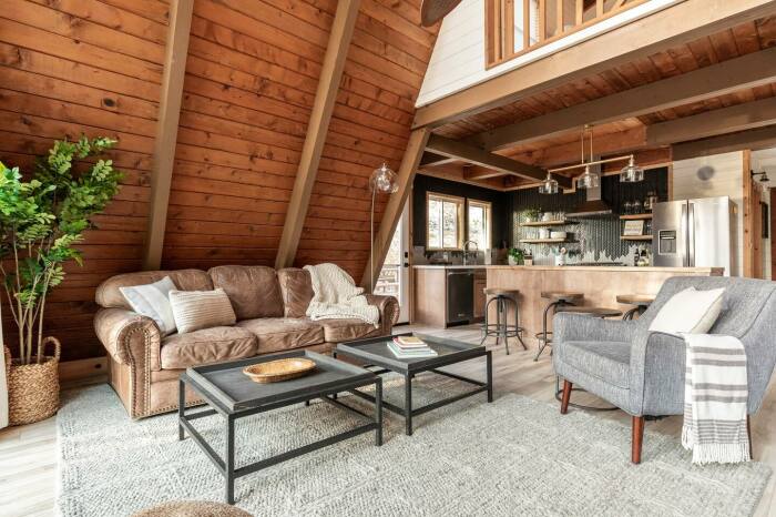 Открытая планировка Acorn Falls делает пространство более объемным и воздушным. | Фото: vrbo.com.