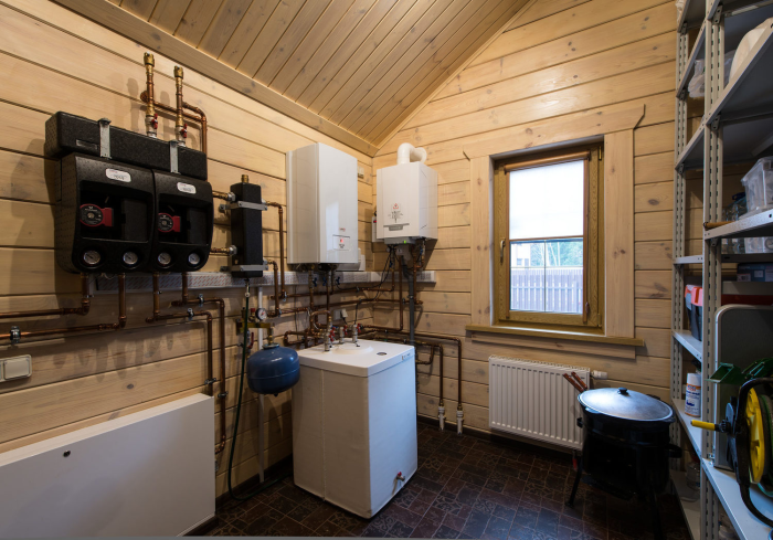 При проектировании малогабаритного дома, особое внимание следует уделить планировке котельной. Если в планах есть возможность подключения газа, то размеры котельной должны соответствовать минимальным параметрам, площадь не менее шести квадратных метров и высота потолков не менее двести пятнадцать сантиметров. Это необходимо для удобства обслуживания и ремонта оборудования. Также, эта площадь не будет потрачена впустую, так как здесь можно разместить стиральную и сушильную машины, гладильную доску, дополнительную раковину и унитаз, а также оборудовать место для хранения вещей.
