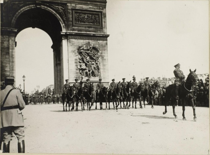 По главному проспекту Парижа проходила маршем и британская кавалерия (1919 г.). | Фото: liveinternet.ru.