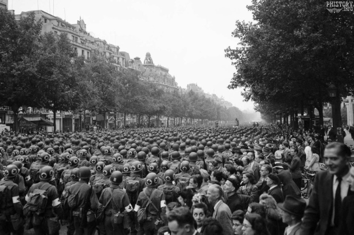 Вплоть до того, когда немцы потерпели поражение в 1944 году, фашисты ежегодно проводили парады победы. После их выдворения, 26 августа 1944 года 2-я бронетанковая дивизия «Свободная Франция» прошла маршем по Елисейским полям, чтобы отпраздновать освобождение Парижа. Спустя 3 дня Парад Победы устроили американцы, по главному проспекту столицы Франции прошли солдаты союзнической 28-й пехотной дивизии.