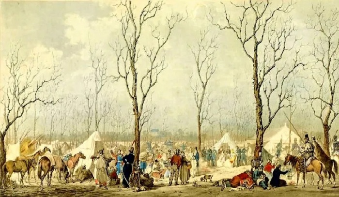 Военный лагерь русских войск на Елисейских полях (1814 г.). | Фото: liveinternet.ru.