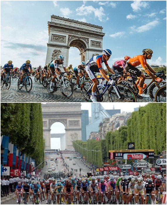 Велосипедисты, участвующие в самой престижной гонке мира и преодолевшие 20 этапов, 21-й непременно проведут в Париже, а пересекут финишную прямую на Елисейских полях. Здесь же победителя чествуют на сцене, установленной прямо на проспекте, и там же вручают награды другим участникам велогонки.