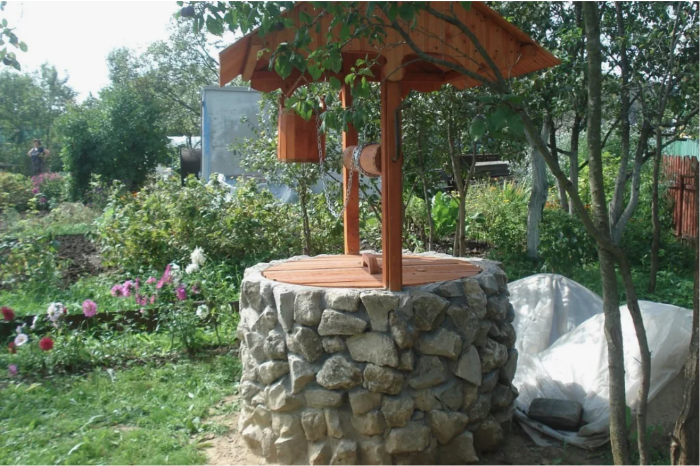 При разработке дизайна территории вокруг колодца необходимо учитывать возможность установки столика или даже скамейки для создания комфортной зоны отдыха. Важно обеспечить такую планировку, чтобы опавшая листва высоких деревьев осенью не попадала в воду колодца, даже при наличии защитной крыши.