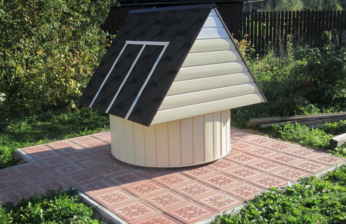 Конструкции с двускатной крышей наиболее распространенный тип домиков для колодцев. Они обычно имеют и ворот, на который устанавливается ведро, и чаще всего создаются из дерева или в сочетании с камнем и кирпичом. Колонка, выступающая из земли, представляет собой абиссинский вариант колодца, который редко встречается на дачных участках, но имеет очень привлекательный внешний вид. Чтобы обеспечить безопасность детей и животных, а также сохранность воды, часто устанавливают деревянную крышку сверху.