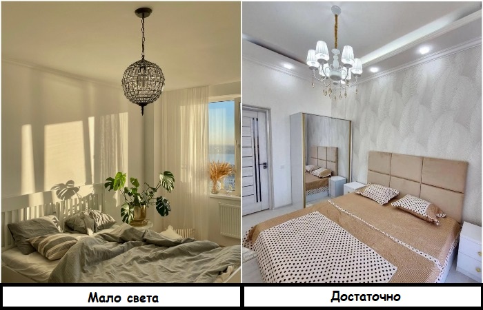 Даже если в спальне будет висеть крупный источник света, но один, он не сможет «организовать» функциональное освещение всей комнаты. Кроме того, если вы привыкли ложиться спать в 22.00, а вторая половинка в полночь, читая книгу, вряд ли вы сможете заснуть при ярком свете люстры. Как видите, одного светильника в комнате явно будет недостаточно, даже если площадь спальни маленькая.