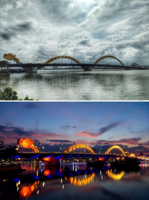 Шестиполосный мост через реку Хань стал функциональным символом возрождения народных традиций (Dragon bridge, Вьетнам).
